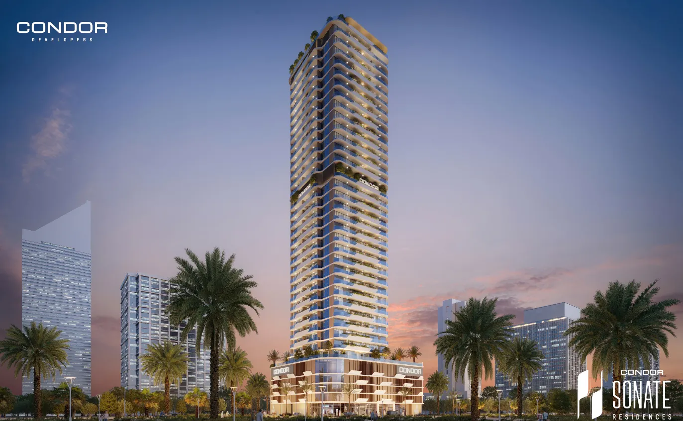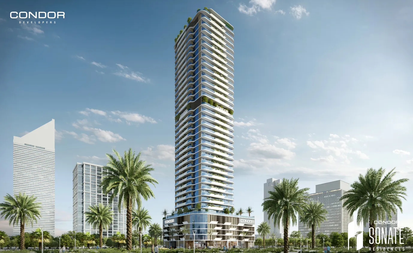 Sonate Residences, developed by Condor Developers, is a 32-story residential tower located in Dubai’s Jumeirah Village Triangle (JVT). The development offers a selection of studios, one-, two-, and three-bedroom apartments, designed with a focus on wellness and contemporary living.